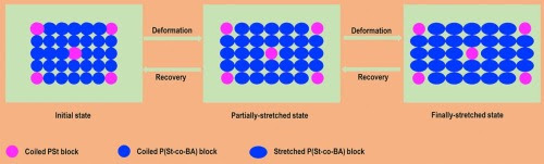 Thermoplastic shape memory polymers (SMPs) as smart materials have a great challenge in adjusting trigger temperature (Tt) for practical device application with high fixity and recovery ratio (>99%). The thermoplastic SMPs based on triblock copolymers have been designed via reversible addition-fragmentation chain transfer (RAFT) emulsion polymerization. The Tt can be manipulated facilely, as designed, with the narrow temperature interval between adjacent Tts (only 10 °C), indicating the high resolution of temperature in molecular design of SMPs. The as-designed SMPs have good shape memory ability and the reprogramming ability of shape memory behaviors. This approach can direct the molecular design of thermoplastic SMPs with tailor-made Ttvia RAFT emulsion polymerization.