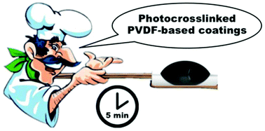 A 4-arm star PVDF was synthesized as an appealing alternative to PVDF/PMMA blends since it provides crosslinked PVDF transparent coatings via photocrosslinking. The process is very fast and versatile, the resulting coating displays very good adhesion properties to a metal surface, and the surface energy and the water contact angle are easily tunable.