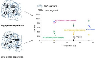 Thermoplastic polyurethane (PU) coatings with pressure sensitive adhesion property were synthetized by reacting 4,4′-diphenylmethane diisocyanate (MDI) with 1,4-butanediol and mixtures of polypropylene glycols (PPGs) of different molecular weights (1000 and 2000 Da). Good tack at 10–37 °C was obtained in PU coatings prepared with PPG2000 + PPG1000 mixtures containing 50 wt% or more PPG2000. The pressure sensitive adhesion properties of the PU coatings were related to their minor content of bonded urethane groups and important degree of phase separation. Furthermore, these PU coatings followed Dahlquist criterion, they showed low glass transition temperatures, high tack, and low 180° peel strength. Therefore, the PU coatings had potential as pressure sensitive adhesives. Finally, PU coating made with PPG of molecular weight 1000 Da did not show pressure sensitive adhesion property.