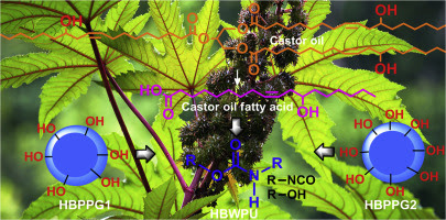 A series of hyperbranched polyesters were incorporated by the chemical reaction of the dimethylolpropionic acid with trimethylolpropane, pentaerythritol, and glycerol as the core group. The castor oil-based fatty acids were also successfully prepared in order to examine the impact of the biopolyols on the thermo-mechanical characteristics of the waterborne hyperbranched polyurethane. The chemical structure of the polyols and the resulting polymer were characterized. Developing −OH functionality of the polyols the polyurethanes represented an improvement in crosslinking density, leading to increasing Tg, tensile modulus, and tensile strength and a decrease in elongation and toughness. Thus, the overall results forward the synthesized HBWPU as a potent sustainable and eco-friendly polymeric material by a simple approach that possesses a higher degree of sustainability over a purely petrochemical route.