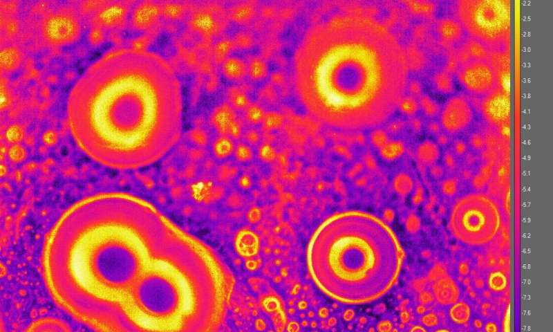 In their current research, Anand and Chatterjee cooled a range of PSLs to -15 degrees Celsius, rendering them all solid. Under high humidity conditions, they noticed that the solidified PSLs melted directly underneath and in the immediate vicinity of water droplets condensing on the PSLs.