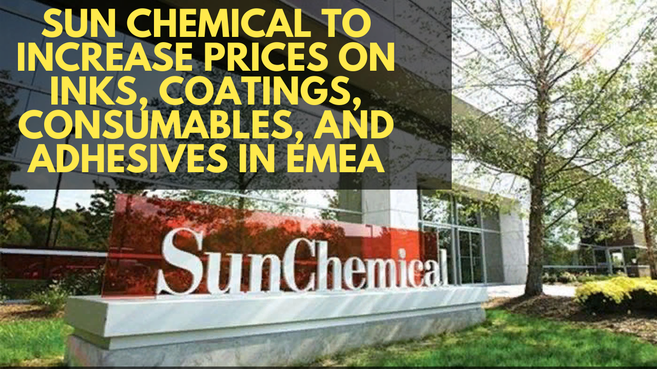 Sun Chemical will increase prices across its entire portfolio of packaging, commercial sheetfed, and screen inks, coatings, consumables, and adhesives in Europe, Middle East, Africa, effective immediately or as contracts allow.